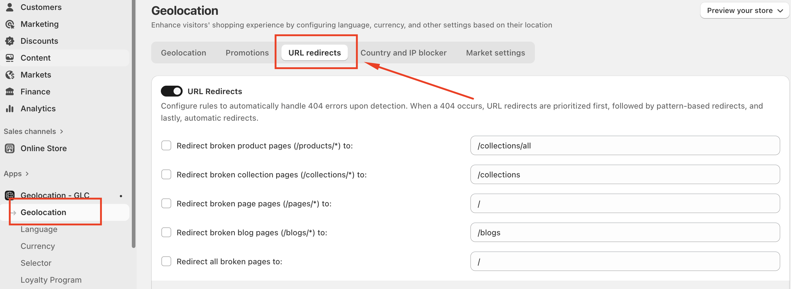 URL Redirects in Geolocation – GLC ensure visitors never hit a dead end. By automatically guiding users to relevant pages, you maintain a seamless shopping experience while protecting conversions and SEO performance.